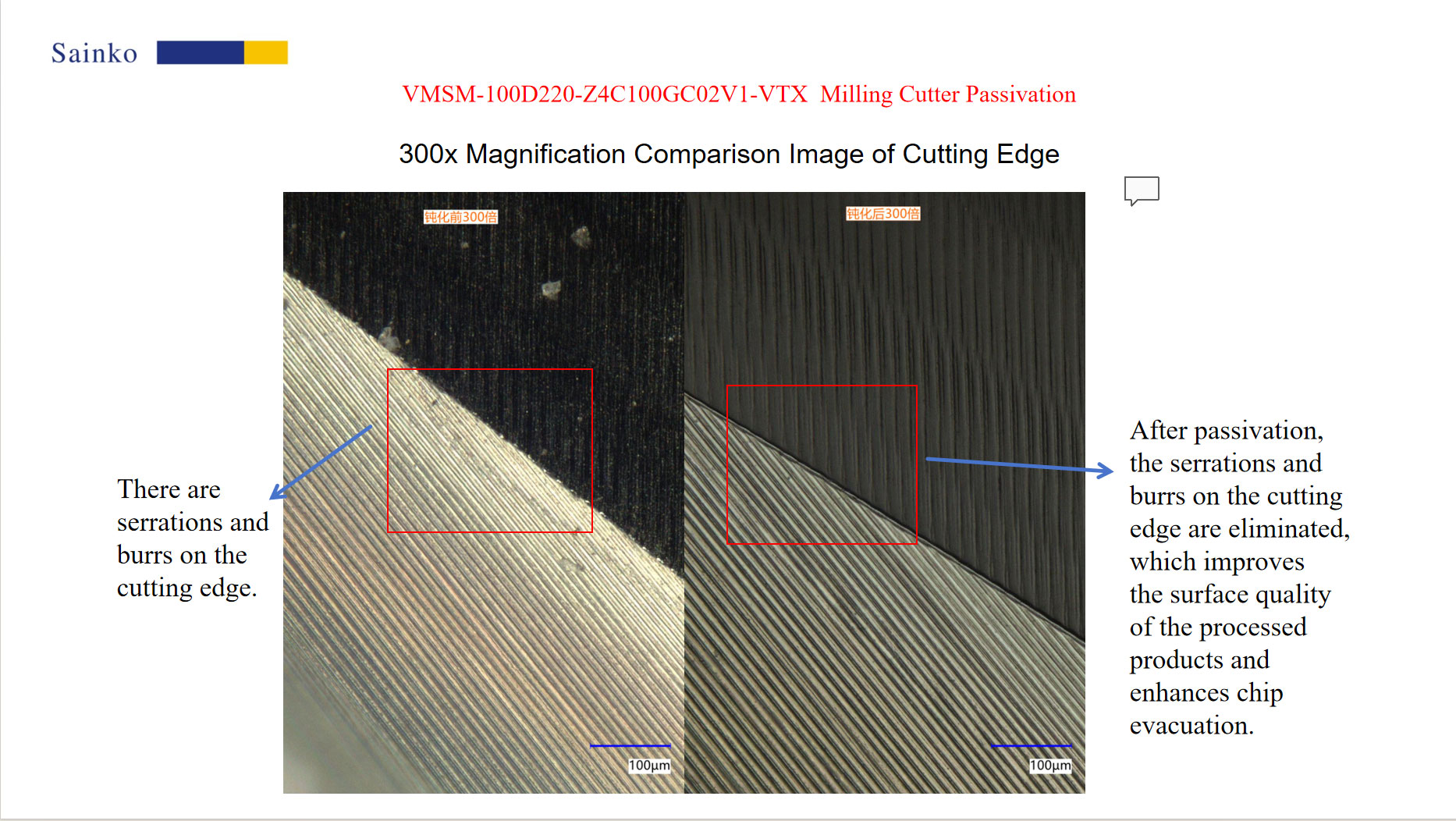 The test sample for this test is a milling cutter provided by the customer, model VMS M-100D220-Z4C100GC02V1-VTX, with a total of 3 pieces. The core requirement is to passivate the milling cutter, and the passivation value must meet the standard of 7 μ m. To accurately meet the requirements, our company uses PL-24AX passivation equipment and 15000-L type abrasive for processing. Through precise control of passivation speed, pressure and other parameters by the equipment, combined with the fine grinding effect of the abrasive, the passivation values of the three milling cutters have consistently reached the preset requirement of 7 μ m, while eliminating the original saw teeth and burrs on the cutting edge. After subsequent verification, the passivated milling cutter not only significantly improves the surface quality of the processed product during cutting, but also optimizes the chip discharge effect, effectively reducing the problems of chip accumulation and scratching the workpiece. The specific test results are detailed in this report.